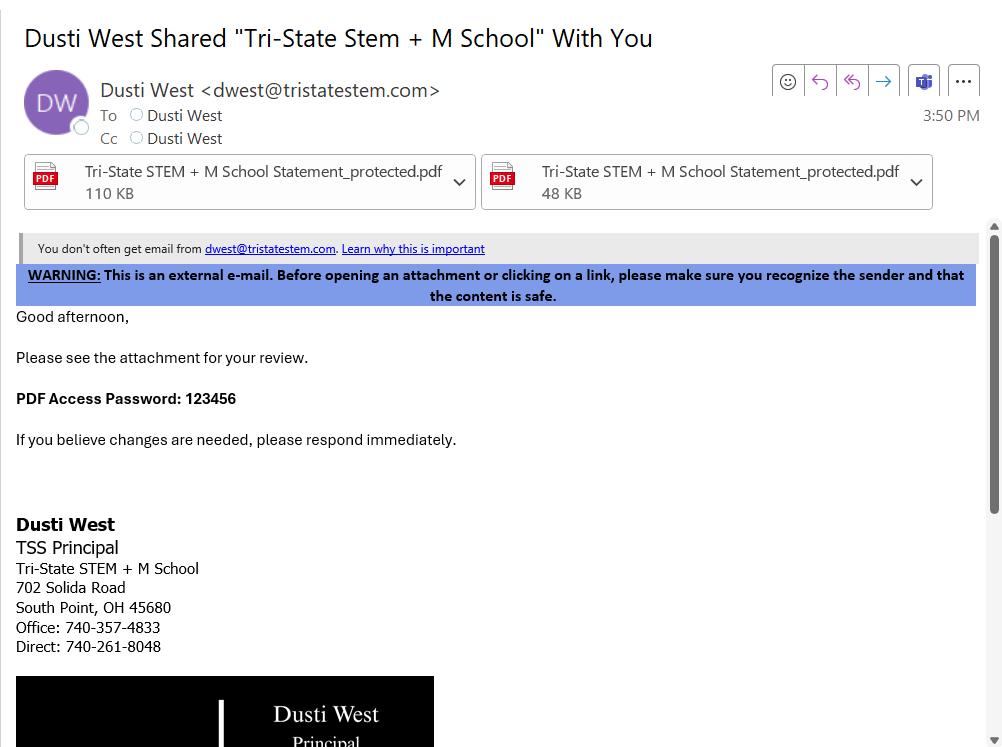 From: Dusti West <dwest@tristatestem.com>